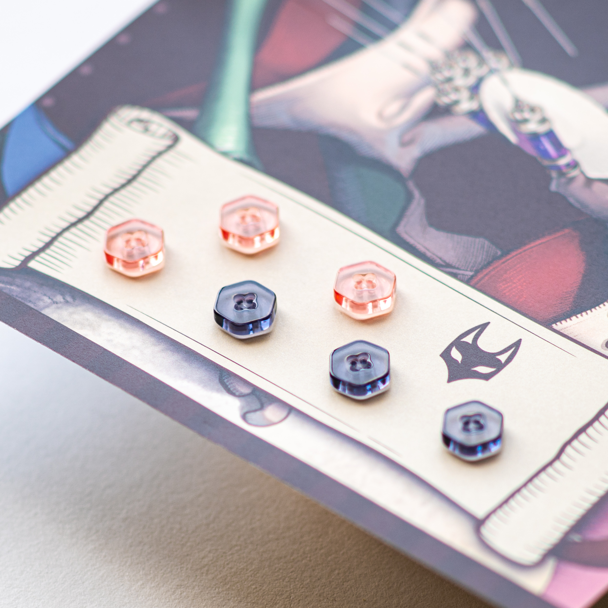 MOLpでも大人気のフォトクロミックボタンが、六角形になって新しくラインナップに。