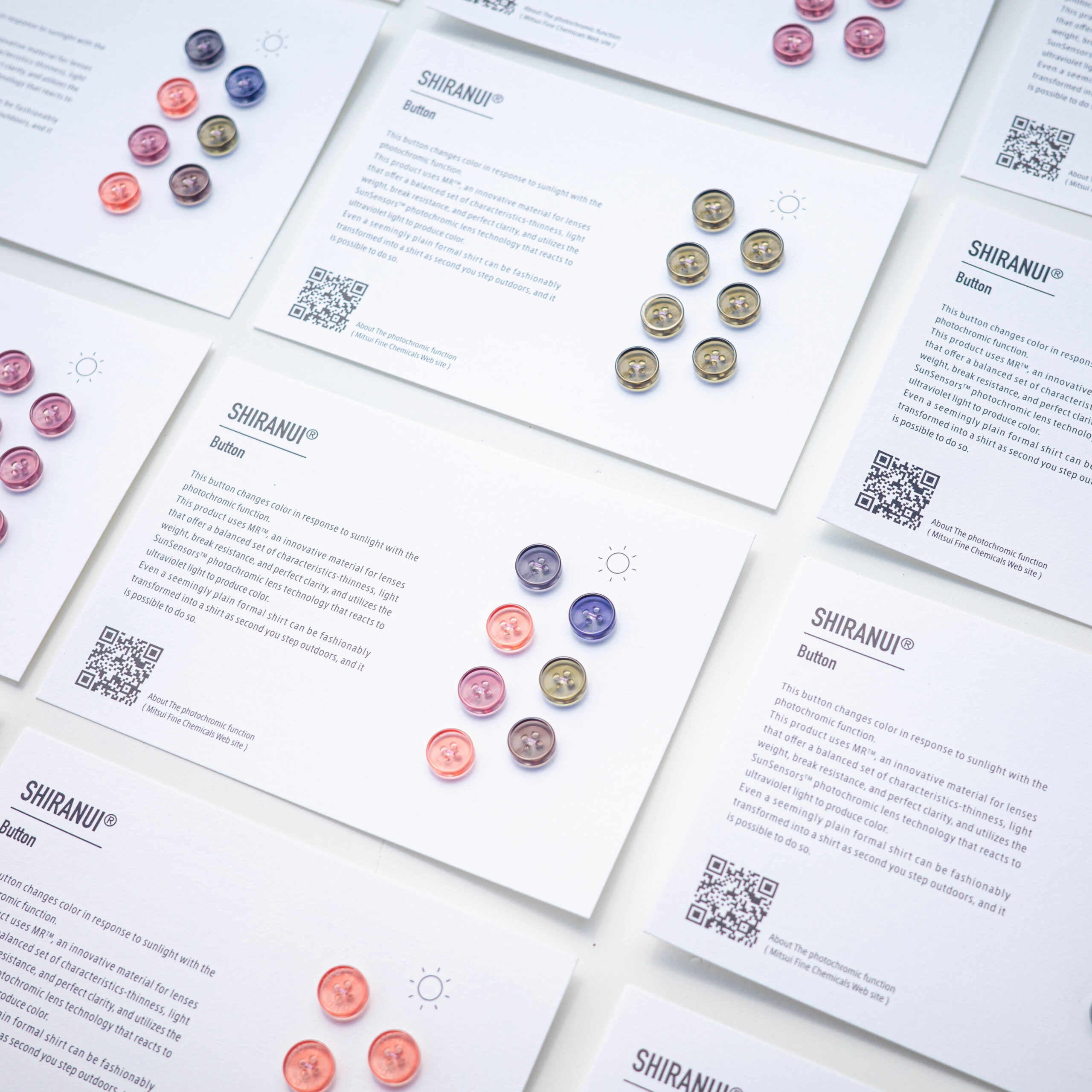 フォトクロミック機能により、 太陽光に反応して色付くボタン。